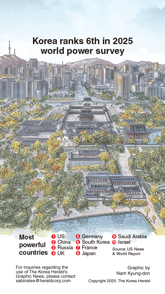 [Graphic News] Korea ranks 6th in 2025 world power survey