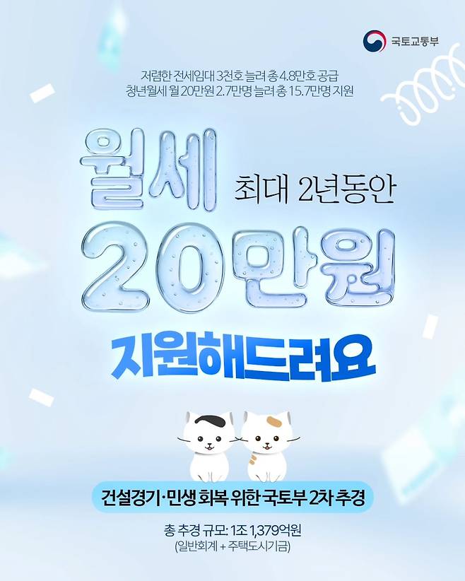 무주택 저소득 청년 대상 월 20만 원, 최대 24개월 지원