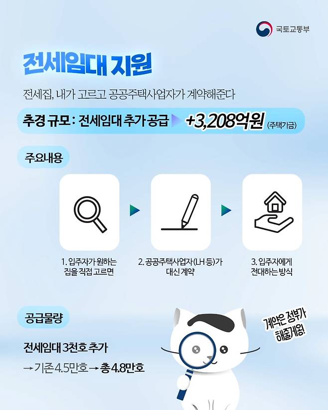 - 추경 규모: 전세임대 추가 공급 +3,208억 원 (주택기금)
