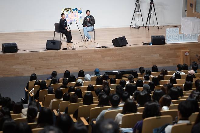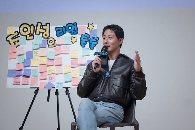 | ▲ 청년들의 질문에 대답하는 조인성 배우 조인성은 청년들이 직접 질문을 적은 포스트잇을 하나씩 확인해 가며 솔직한 대화를 이어갔다. |