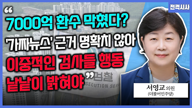 [전격시사] 서영교 더불어민주당 의원 - “7000억 환수 막혔다? ‘가짜뉴스’ 근거 명확치 않아”