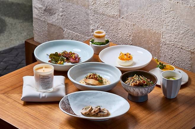 서울 도심의 야경이 내려다보이는 호텔 최고층 ‘더 라운지’에서는 메종 마르지엘라의 대표 향인 ‘바이 더 파이어 플레이스’의 따뜻한 스모키 향과 달콤한 여운을 모티프로 한 8코스 모던 한식 디너가 준비된다. 정상협 셰프가 이끄는 이번 코스는 불과 숲, 겨울의 온기를 테마로 구성됐다.