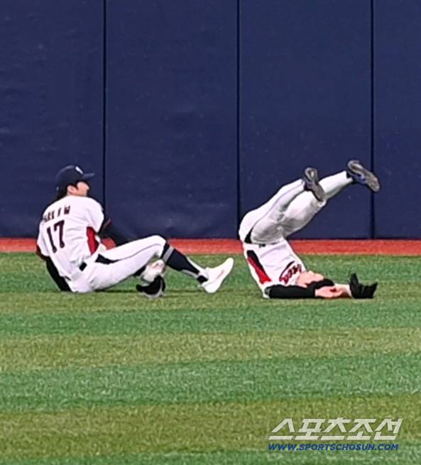 대표팀 외야수 박해민과 김성윤이 수비 훈련을 하다 충돌한 것이다.