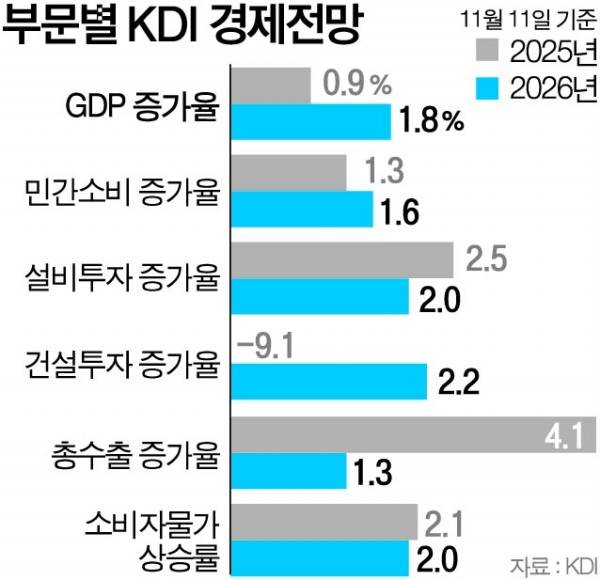 KDI 성장률 전망 상향…올해 0.8→0.9%, 내년 1.6→1.8%