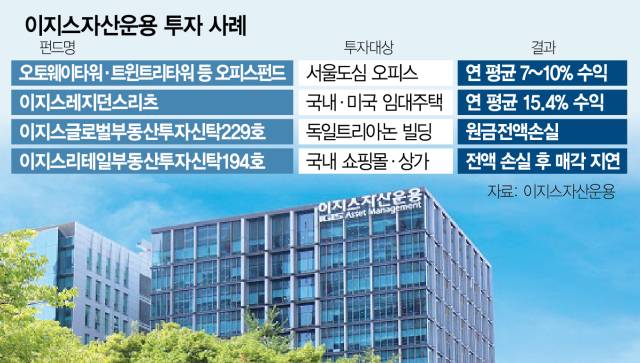 한편으로 이지스자산운용의 새 주인은 그간 해외부동산 투자과정에서 아직 마무리 짓지 못한 손실 처리에 대한 부담을 이어가야 한다. 독일 트리아논 빌딩, 국내 쇼핑몰 상가 투자 펀드 등 일부 상품은 두 자릿수에서 전액 손실이 났고, 법적 소송도 있다. 또한 경쟁사보다 성과보수 비중이 큰 이지스의 사업구조는 부동산 업황이 출렁일때마다 실적이 흔들리게 하는 요인이다.