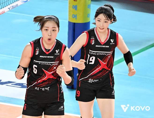 이날 정관장은 측면과 중앙 공격을 두루 활용했다. 아포짓 스파이커 엘리사 자네테의 공격 점유율은 34.38%였고, 미들 블로커 듀오 정호영과 박은진은 각각 14.58%를 기록했다. 측면 공격 3옵션 박해민도 10.42%를 점유했다. 세터 최서현이 특정 선수에게 의존하지 않는 공 배급을 하며 페퍼저축은행 블로커들을 무력화했다. 이날 페퍼저축은행 블로킹 성공은 5개뿐이었다.