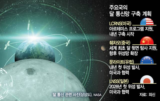유럽우주국(ESA)과 일본 우주항공연구개발기구(JAXA)도 각각 ‘문라이트’와 ‘달항법위성시스템(LNSS)’ 구축에 나섰다. ESA는 내년 첫 위성인 ‘루나 패스파인더’, JAXA도 2028년 첫 위성 발사를 계획 중이다. 이들은 나사 주도로 각자 인프라를 합친 국제표준 위성망 루나넷 구현에도 협력한다.