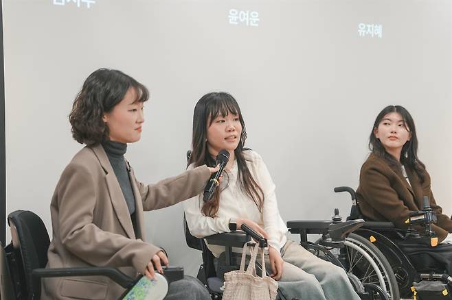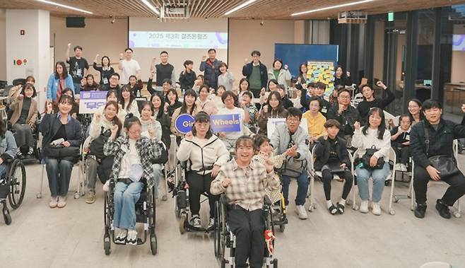 | ▲ 제3회 무의 '걸즈온휠즈'에 참여한 참가자들. '학교에서 살아남기'주제로 휠체어 이용 MZ 여성들이 학교에서 어떻게 생활하고 자립했는지를 말해주는 토크콘서트다. |