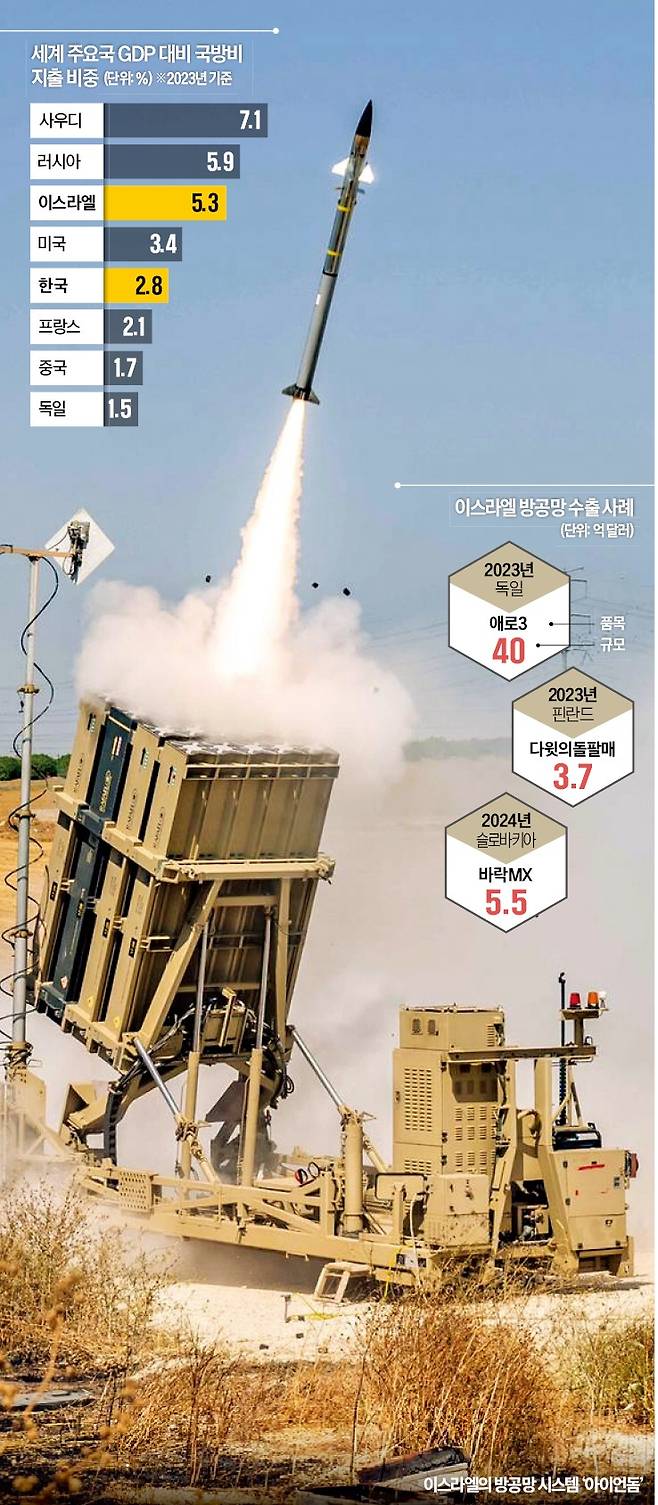 이스라엘의 듀얼 유스 원칙은 전시 국가가 택할 수 있는 최선의 전략이다. 이스라엘 국방비가 국내총생산(GDP)에서 차지하는 비중은 평시에도 4~5%에 달하고, 작년과 같은 전시엔 8%대로 치솟는다. ‘방산 R&D→민간 스타트업→글로벌 수출’이라는 흐름을 만드는 등 방산을 민간 혁신의 엔진으로 활용하는 이스라엘 모델이 듀얼 유스 전략을 통해 작동한다. 감청·통화 분석 시스템을 개발한 NICE가 현재 기업의 고객경험 관리(CX)용 AI 기업으로 각광받는 것이 주요 사례다. 사이버보안 분야의 체크포인트소프트웨어테크놀로지, 군용 레이더를 개발해 자율주행 차량용 4차원(4D) 레이더까지 공급하는 아베로보틱스도 이스라엘을 대표하는 듀얼 유스 기업이자 미국 나스닥 상장사다.