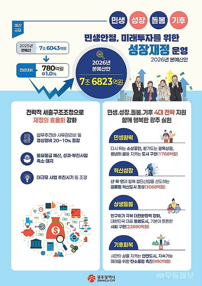 광주시의 내년도 본예산은 서민경제 안정과 미래 먹거리 산업 육성, 돌봄, 기후라는 4대 축을 중심으로 편성됐다.