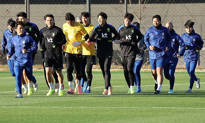 | 승리 위한 ‘구슬땀’ 홍명보 감독이 이끄는 한국 축구 국가대표팀 선수들이 지난 10일 충남 천안의 대한민국축구종합센터에서 열린 11월 A매치 2연전 대비 첫 소집 훈련에서 단체 달리기로 몸을 풀고 있다. 천안=연합뉴스 |