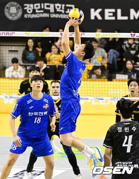 [OSEN=의정부, 조은정 기자]11일 오후 경기도 의정부시 경민대학교 체육관에서 진에어 2025-2026 V-리그’ 남자부 의정부 KB손해보험과 수원 한국전력의 경기가 열렸다.