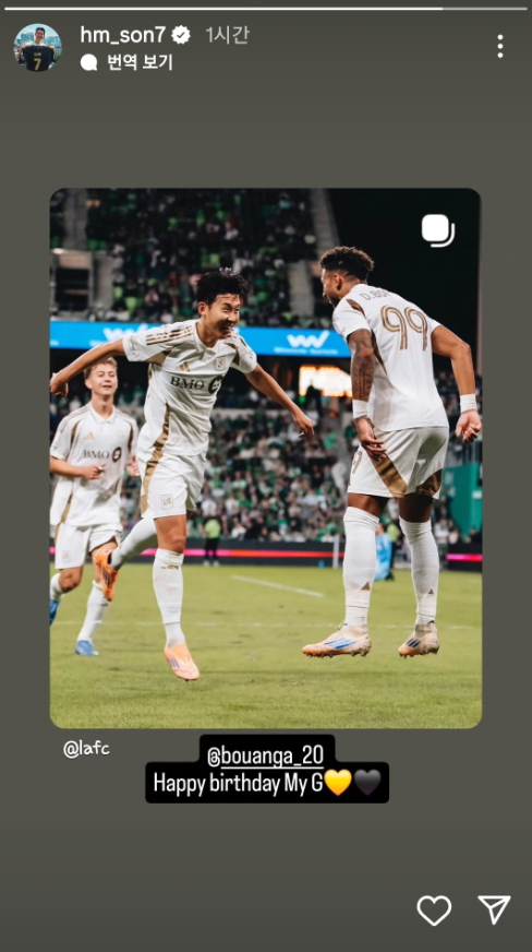 LAFC에서 손흥민과 함께 환상적인 호흡을 보여주고 있는 부앙가가 이날 생일을 맞이하자 애정 어린 메시지를 전한 것이다.