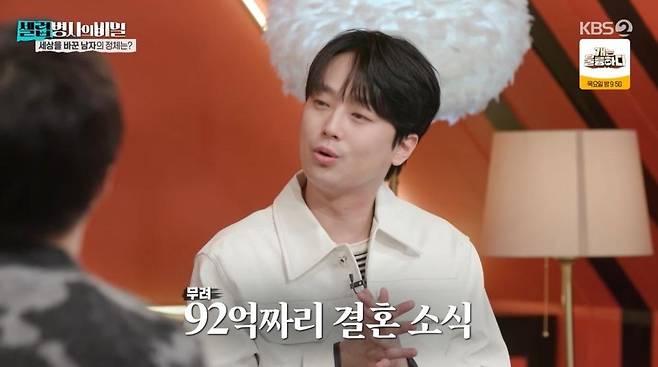 이날 방송에서는 경제 크리에이터 슈카와 배우 이상엽이 스페셜 게스트로 등장했다. 이찬원은 슈카에게 "혹시 그 기사 들었냐? 760만달러는 약 90억원이 넘는 금액인데 무려 92억짜리 결혼 소식이 있다"고 말했다.