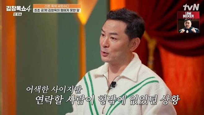 이어 김창옥은 "저는 형과 어릴 적부터 떨어져 살았다. 같이 살았던 적이 없다. 제가 처음 형을 본 게 군대 휴가 나왔을 때다. 큰 누나는 시집와서 매형이랑 왔을 때 처음 봤다. 나이 차이도 많이 나고 너무 어려운 거다"라고 털어놨다.