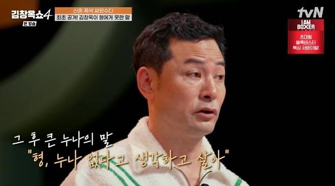 하지만 그 이후 김창옥은 큰 누나로부터 '서울에 형, 누나 없다고 생각해라. 그래야 성공한다'라는 말을 들었다고. 김창옥은 "그 말이 가슴에 박히더라. 그 말도 다 맞고, 형 누나한테 도움을 받은 것도 맞는데 그때 내가 너무 힘드니까 그 말만 생각이 나더라. 그렇게 형, 누나와 얘기를 안 하게 됐다"라고 고백하며 눈시울을 붉혔다.