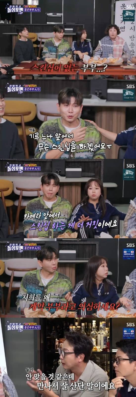 그리고 이날 제이쓴과 홍현희는 '계약 부부설'에 대해 억울해했지만, 홍현희의 절친 신기루는 "둘이 부부치고 스킨십이 너무 없다"면서 의심(?)을 했다.