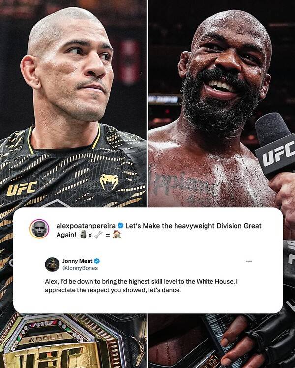 이를 의식한 존스 역시 이듬해 6월 미국 백악관에서 열리는 매치에 참여시켜달라고 요청했고, 현 라이트 헤비급 챔피언 페레이라도 존스를 콜아웃 하기에 이르렀다. 이에 존스도 사회관계망서비스(SNS)를 통해 "알렉스, 백악관에서 최고의 수준을 보여주자. 네가 보여준 존중에 감사한다. 춤을 추자"라며 수락 의사를 밝혔다.