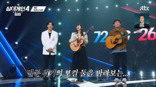 11일 밤 JTBC '싱어게인4'에서는 2라운드 팀 대항전 무대가 펼쳐졌다. 55호 가수와 72호 가수는 '찐텐' 팀을 결성, 나미의 '슬픈 인연'을 선곡했다.