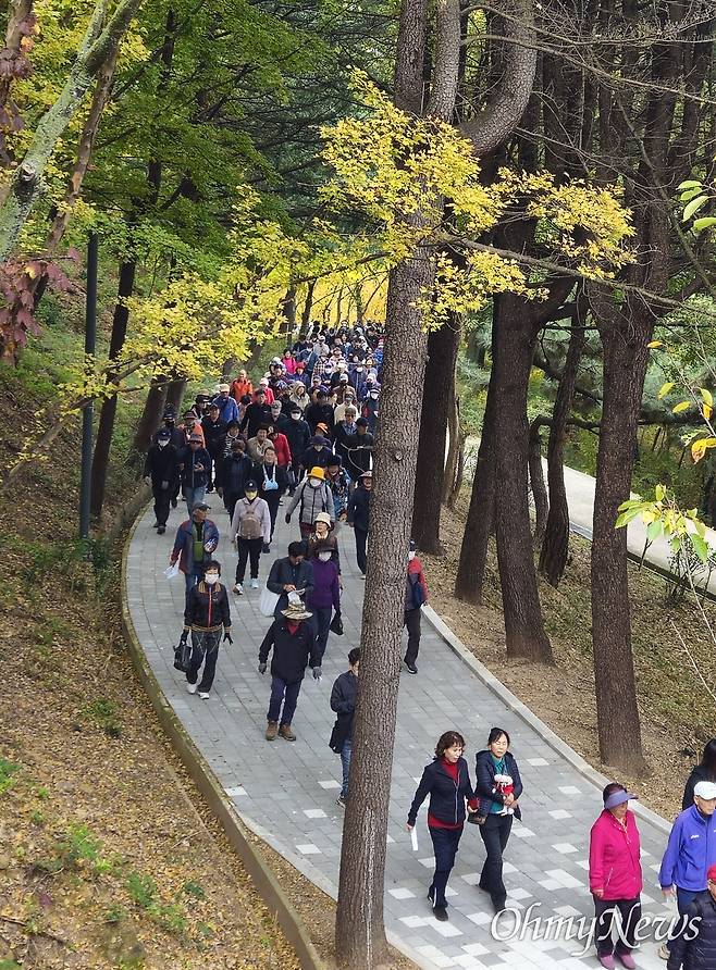 | ▲ 지난 8일 대구 북구 침산공원에서 제2회 북구청장배 생활체육 걷기대회가 열려 참가자들이 침산공원 일대를 걷고 있다. |