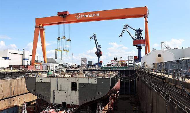 | 뜨는 마스가 교두보 한국과 미국의 조선협력프로젝트 ‘마스가(MASGA)’의 교두보로 평가되는 미국 펜실베이니아주 한화필리조선소에서 선박 건조작업이 진행 중이다. 세계일보 자료사진 |