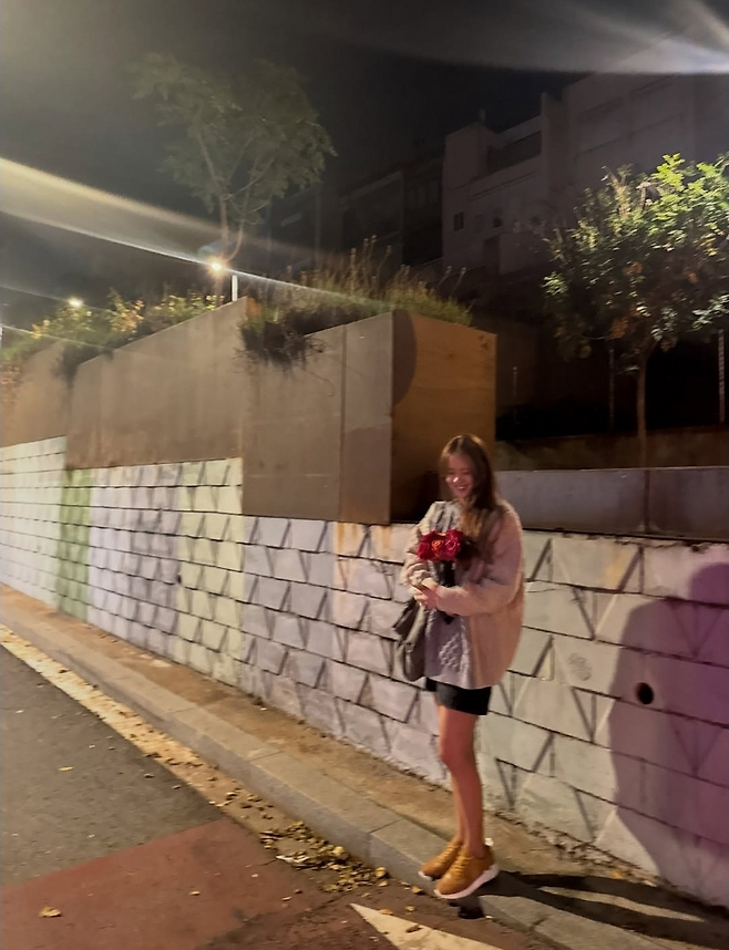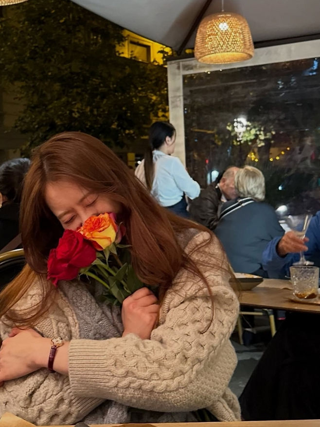 햇살 아래서 자연스럽게 흐르는 긴 생머리와 블랙 선글라스, 그리고 손에 든 장미 한 송이가도시적인 낭만과 영화 같은 장면을 만들어냈다. 무심하게 걸친 니트 하나로도 실루엣이 흐트러지지 않는 ‘고아라표 클래식’의 정석이었다.