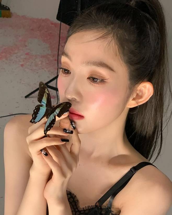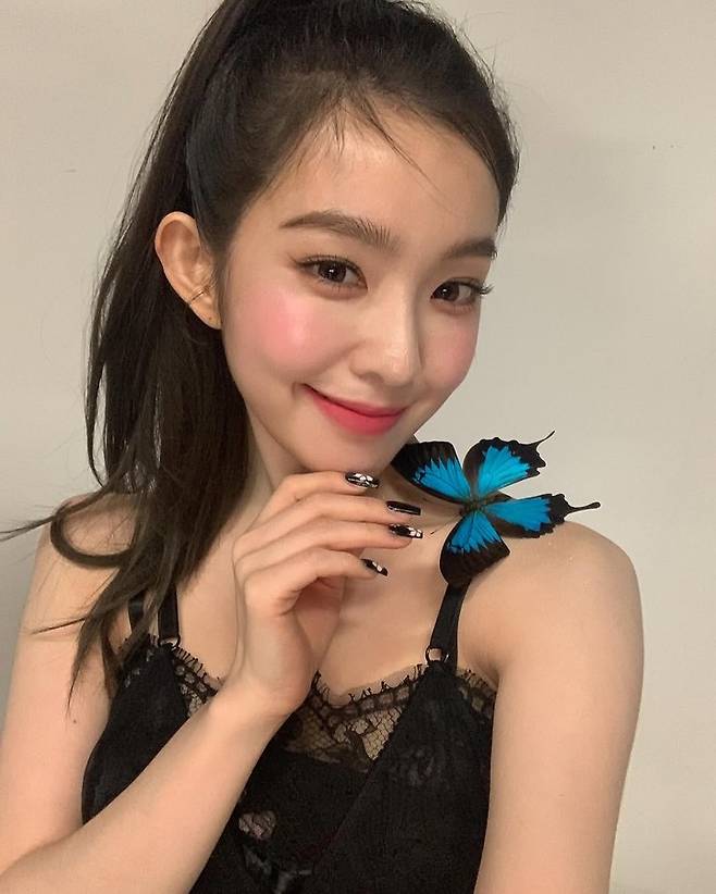 지난 11일 아이린은 자신의 SNS에 여러 장의 사진을 게재했다. 공개된 사진 속 아이린은 어깨를 드러낸 블랙 레이스 슬립 톱을 착용한 채, 나비를 손끝에 올려두고 몽환적인 분위기를 자아냈다.