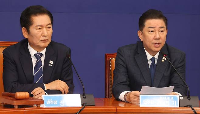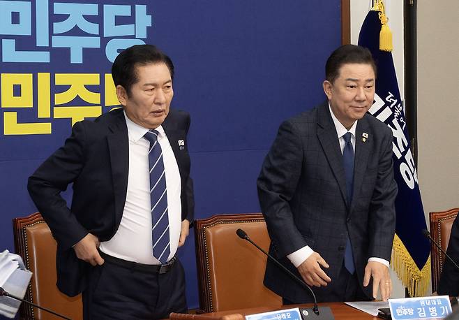 | ▲ 더불어민주당 정청래 대표와 김병기 원내대표가 12일 오전 서울 여의도 국회에서 열린 최고위원회에 참석하고 있다. |