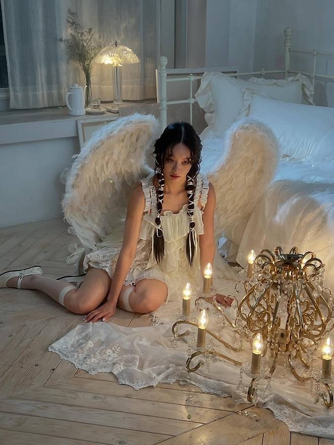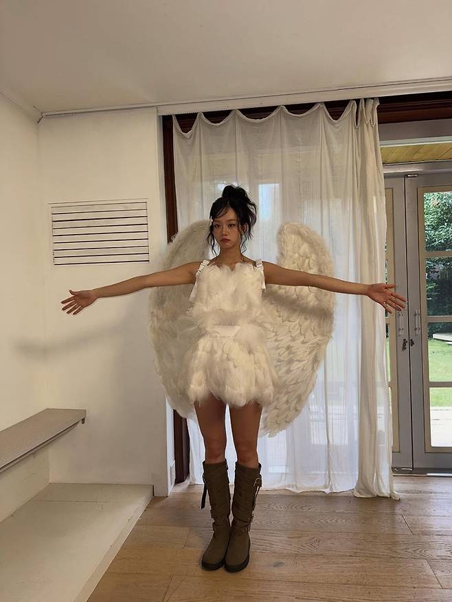 공개된 사진 속 혜리는 순백의 깃털 의상을 입고 커다란 천사 날개를 착용해 신비롭고 몽환적인 분위기를 완벽하게 연출했다.