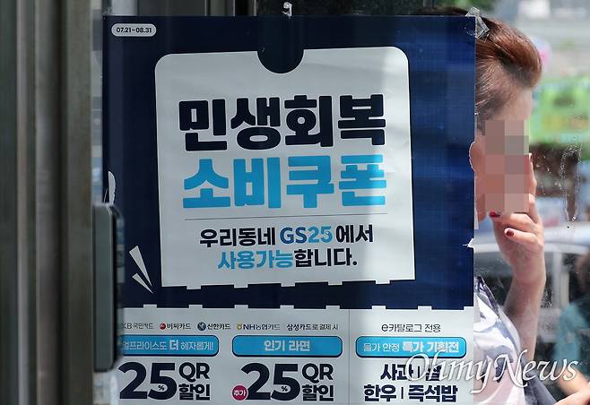 | ▲ '민생회복 소비쿠폰' 지급이 지난 7월 21일부터 시작됐다. 7월 23일 서울 종로구의 한 편의점에 사용가능 안내문이 부착되어 있다. |