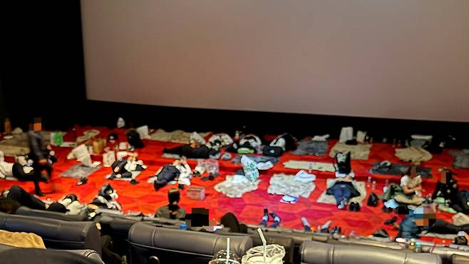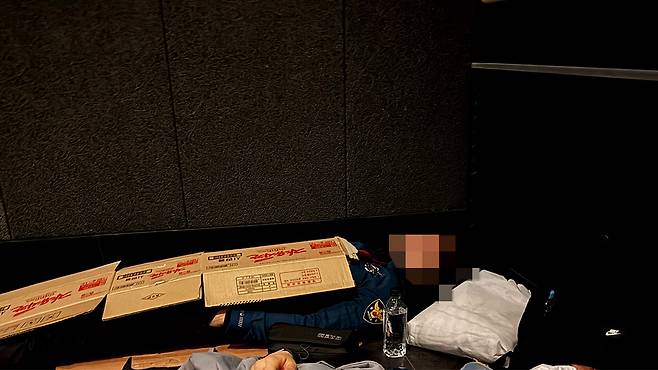 경찰직협이 공개한 사진에는 경찰관이 바닥에 박스를 깔고 쪽잠을 청하거나, 영화관 스크린 앞에 누워있는 모습 등이 적나라하게 담겼습니다. 영화관 복도 카펫 위에서 쉰 경찰들 중에는 먼지 때문에 목이 아프다는 사례가 잇따르고 있는 것으로 전해졌습니다.