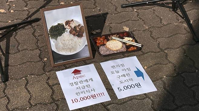 당시 식단 사진 옆에는 편의점에서 구입한 실제 도시락이 놓여 있었습니다. 경찰직협 관계자들은 "현장에서 제공된 식사가 1만 원짜리였다는데, 5천 원짜리 편의점 도시락보다 부실하다는 걸 보여주기 위해 사왔다"고 말했습니다.