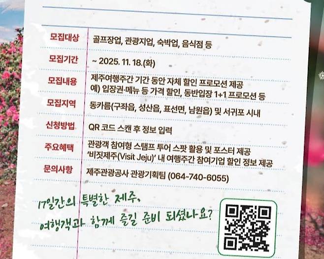 참여 기업은 자체 할인이나 체험형 프로모션을 등록하면 공식 관광포털 비짓제주에 소개되고, QR 스탬프 투어 장소로도 지정됩니다.