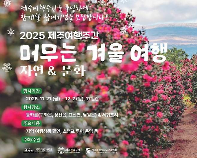 21일부터 12월 7일까지, '머무는 겨울 여행, 자연&문화'를 주제로 제주 여행주간 시즌4가 열립니다.