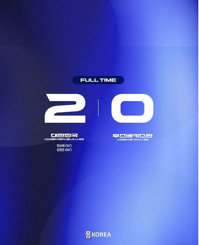전반전을 0-0으로 마쳤지만 후반 11분 정승배의 선제골로 리드를 잡았다. 이후 교체로 들어온 유럽파 김명준(헹크)이 후반 43분에 헤더 추가골을 터트리면서 2골 차 완승으로 경기를 마쳤다.