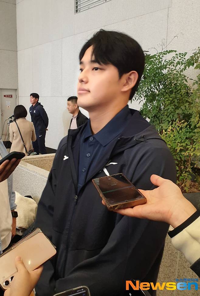 대표팀에서 가장 힘든 시간을 보내고 있는 선수는 역시 최악의 10월을 보낸 김서현. 소속팀 선배로서 힘든 시간을 보내는 김서현을 가장 많이 지켜본 문동주다. 하지만 문동주는 "서현이에게 위로를 해줄 것이 있겠나"고 말했다. 위로가 필요한 상황이 아니라는 것이다.