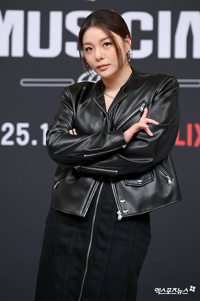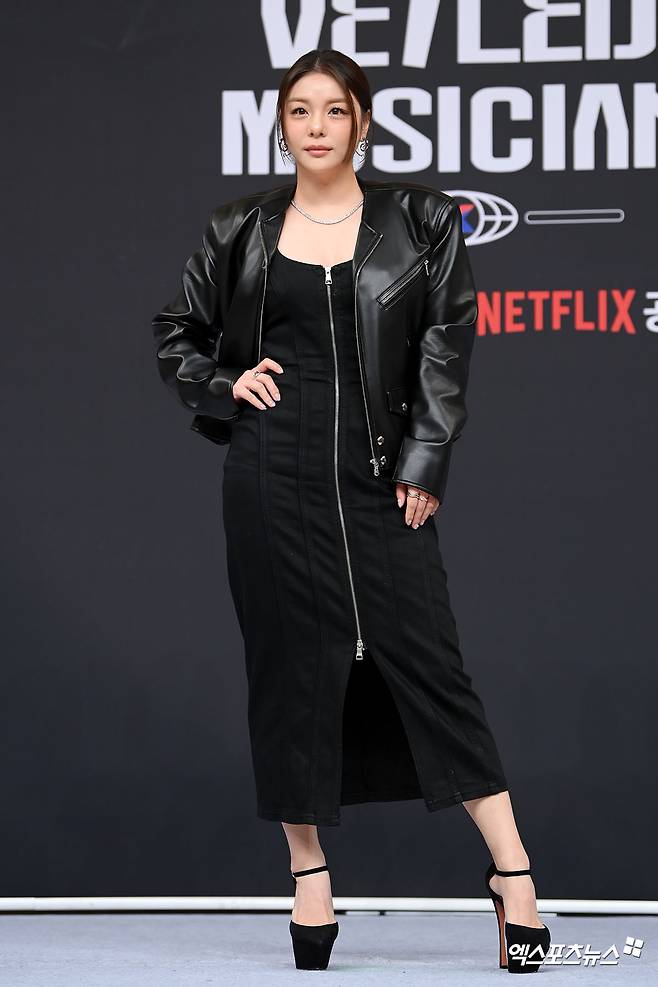 이날 에일리는 블랙 레더 재킷에 지퍼 디테일이 포인트인 슬릿 원피스를 매치해 시크하면서도 도회적인 무드를 연출했다. 여기에 엄청난 굽 높이가 인상적인 플랫폼 하이힐로 존재감을 더하며, 걸음마다 강렬한 카리스마를 발산했다.