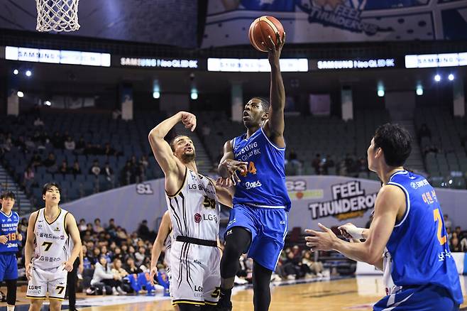 양 팀은 팽팽한 시소게임을 이어갔다. 칸터가 풋백 등 연속 6득점을 올렸다. 50-50으로 다시 균형을 이뤘다. 이후 삼성은 LG에 연속 외곽포를 허용했다. 구탕이 응수했지만, 역부족이었다.