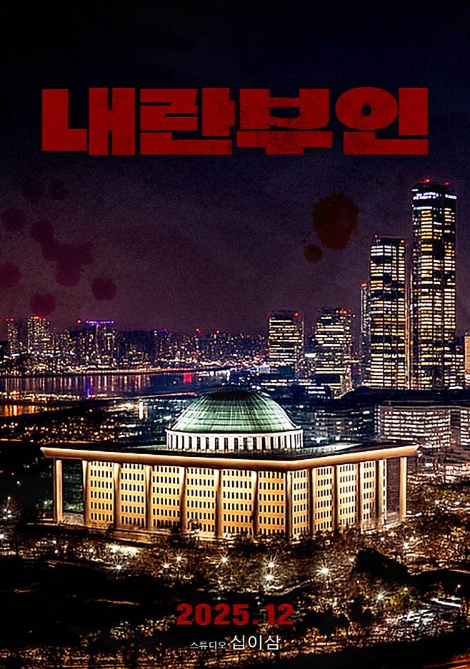 붉은빛으로 번지는 타이틀 로고 ‘내란부인’은 권력의 심장부를 겨누는 듯한 강렬한 인상을 남기며, 복수와 욕망, 배신이 얽힌 영화의 긴장감을 시각적으로 표현했다.