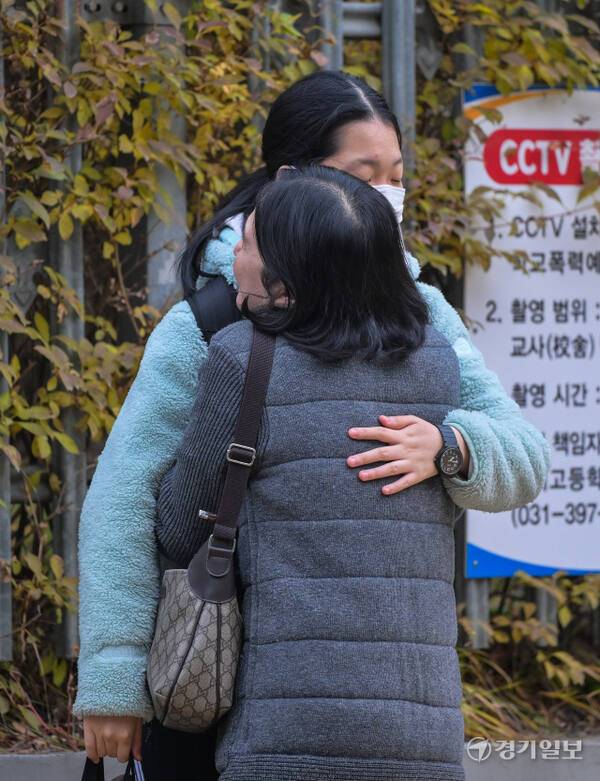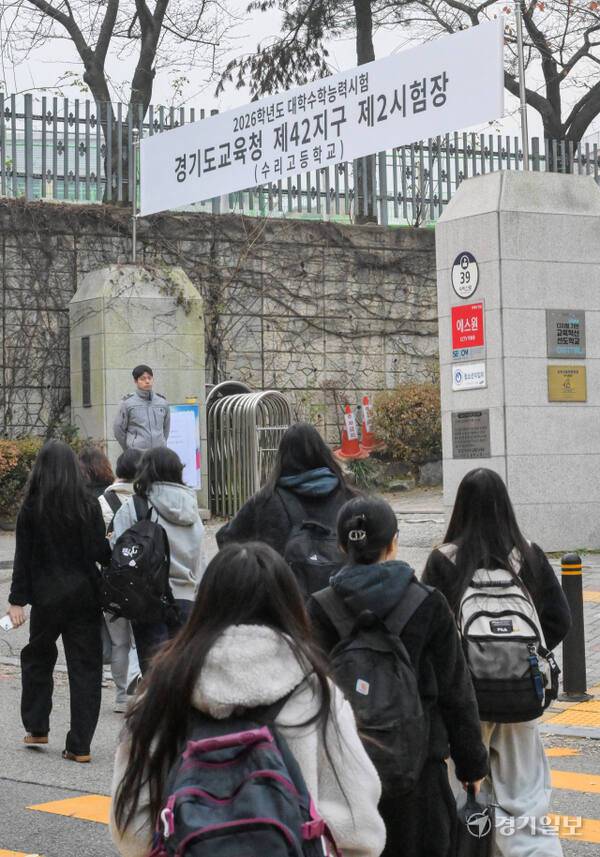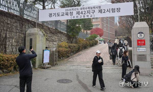 2026학년도 대학수학능력시험일인 13일 오전 경기도교육청 제42지구 제2시험장인 군포시 수리고등학교에서 학부모들이 수험생들을 응원하고 있다.