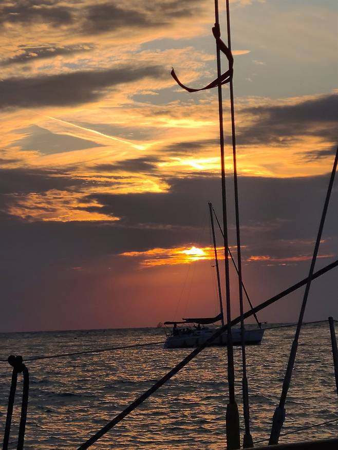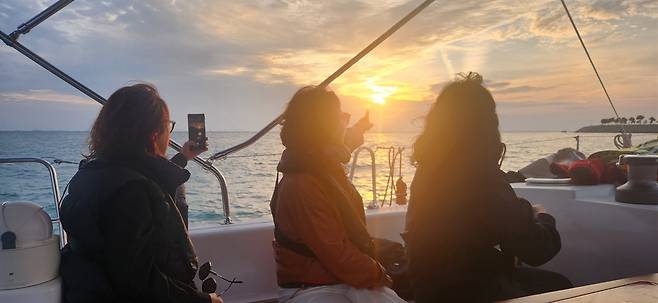 도종환의 시 '저녁노을'이 떠올랐다. 나도 시인처럼 '당신도 저물고 있습니까? 당신도 물들고 있습니까?'라고 묻고 싶어졌다. 아름다운 빛깔에 감탄하면서 대자연의 신비로움 앞에서 겸손을 배우며 하루를 돌아보게 하는 것, 이것이 노을이 선사하는 매력일 것이다. 꿈같은 시간이 흘렀다. 우리는 저마다 가슴에 노을 한 자락 마련하고 한껏 차분해진 마음으로 요트 체험을 마무리했다.