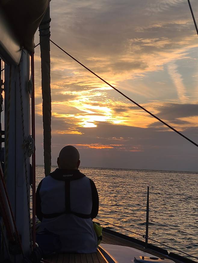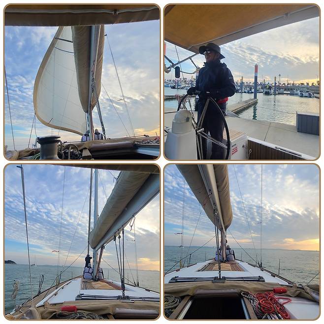 요트 체험 중 바람의 방향에 따라 돛을 펴고 접기 위해 왔다 갔다 줄을 당기며 조정하는 이들의 모습이 정말 멋졌다. 말려있던 돛이 넓게 촤르르 펼칠 때 우리 모두 환호성을 보냈다. 망망대해에서 돛을 펴고 항해를 꿈꾸는 친구의 마음이 느껴졌다. 이 출렁거림을 즐기며 새로운 꿈을 꾸는 친구의 용기와 도전에 박수를 보낸다.