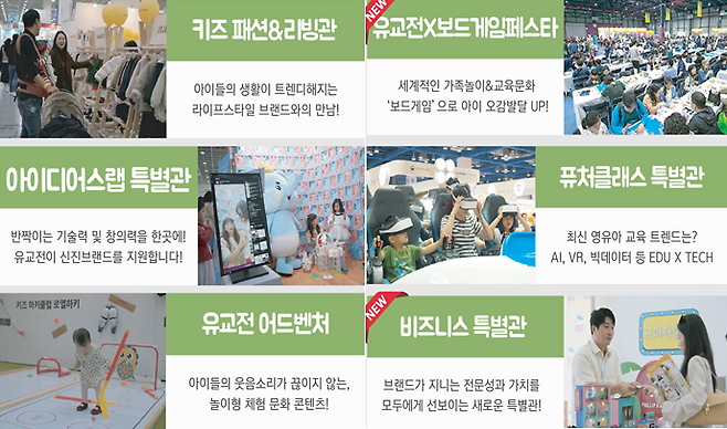 올해 마지막 유교전을 맞이하여 일반 가정에서 쉽게 접할 수 없는 다양한 놀이o체험 기획관을 준비했다. 아이들의 활발한 신체, 정서, 창의력 발달에 도움이 되는 승마체험 및 다양한 원데이클래스와 같은 체험활동을 선보인다. 뿐만 아니라 코딩, 인공지능(AI), 가상현실(VR) 등 다양한 기술들을 접목한 디지털 기기에 익숙한 아이들을 위한 '퓨처클래스' 기획관과 아이들의 패션과 라이프스타일을 한껏 살릴 수 있는 기획관을 통해 AI시대 유아 교육과 라이프스타일 트렌드를 한 번에 볼 수 있다.