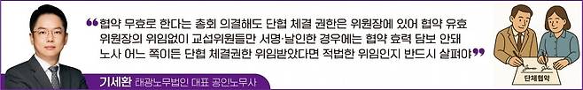 노사 협상의 최고의 성과는 단연 단체협약이다. 조합원 모두의 근로조건, 나아가서는 회사의 모든 임직원의 근로조건을 대표할 수도 있는 만큼 온전한 협약의 효력을 담보하기 위해 최종적 협약 체결이 완료될 때까지 협약 체결의 주체에 대한 법적 기준 체크에도 만전을 기해야 한다.