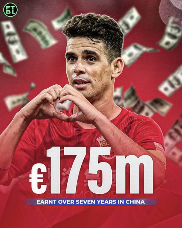오스카의 중국 생활은 짧게 끝날 것처럼 보였지만, 오스카는 2017년부터 지난해까지 상하이 포트에서 뛰며 전성기를 중국 무대에서 보냈다. 이 기간 동안 오스카는 무려 1억 7500만 유로(약 2981억원)의 연봉을 받은 것으로 알려졌다.