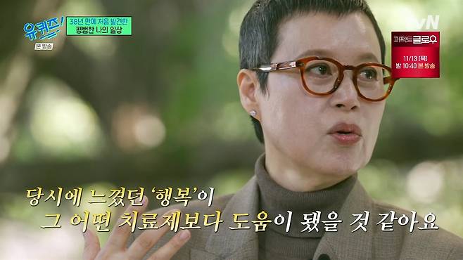"사람이 암 진단을 받으면 인생을 돌아볼 필요가 있다고 하더라. 나는 언제 재발할지 모르고 어디로 전이될지도 모른다. 근데 열심히 살아서 억울하고 분하다는 생각은 전혀 안 했다. 치료받으면서도 어쩌면 이렇게 감사할까 싶었다. 주변에서 많은 기도를 해주시는 것도, 여름에 방사선 치료를 한여름에 시원한 곳에서 받는 것도 감사하더라. 누구를 원망하거나 자책하기보다, 긍정적으로 감사한 마음들이 더 생기니까 치료하는 내내 즐거웠다."