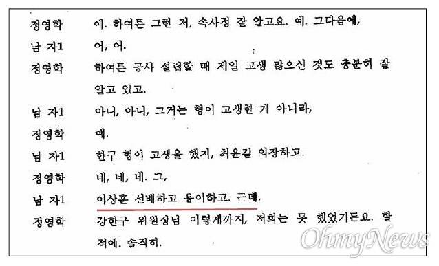 정영학 : 강한구 위원장님이 이렇게까지, 저희는 못 했었거든요. 할적에. 솔직히.