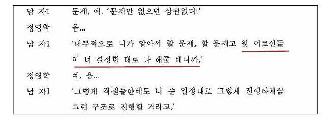 남자1 : '내부적으로 니가 알아서 할 문제, 할 문제고 윗 어르신들이 너 결정한 대로 다 해줄 테니까.'