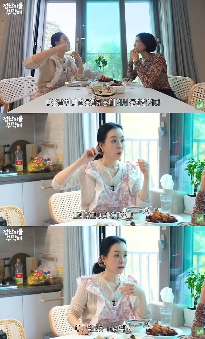 "잘 (봉합) 된거냐"며 걱정하는 윤세아에게 김정난은 "일주일 지나서 어제 실밥 뽑았다. 밥 먹기 전에 이런 얘기해서 미안하다"고 안심시켰다.