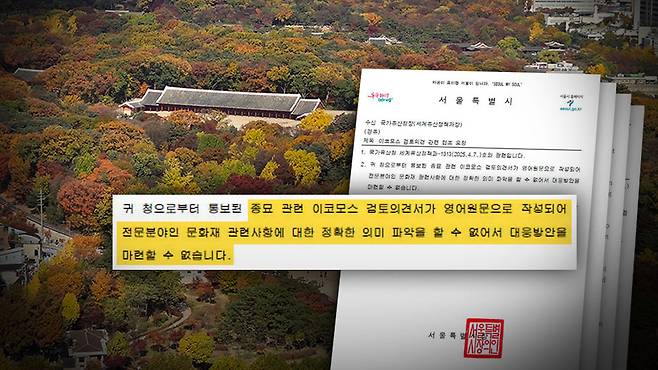 [단독] 서울시 "종묘 공문, 영어라 의미 파악 못 해"‥모스탄에는 영어로 보내더니